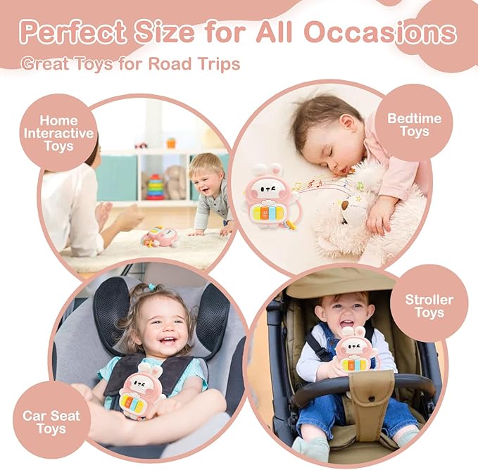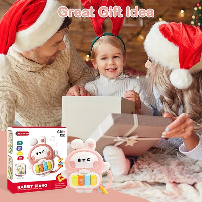 Baby Musical Toys 6-12 Months, Rabbit Piano for Baby Musical Toys for Toddlers 1-3, Busy Board with Music & Light, Birthday Toy for Infant Toddler 1 Year Old Boy Girl Gifts (Pink)