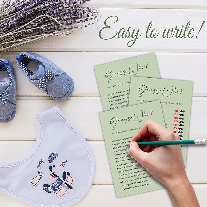 30 Pcs Minimalist Green Baby Shower Game Cards, Guess Who Game, Baby Shower Games To Play With Family And Friends, Baby Announcement, Gender Reveal Party Supplies - A04