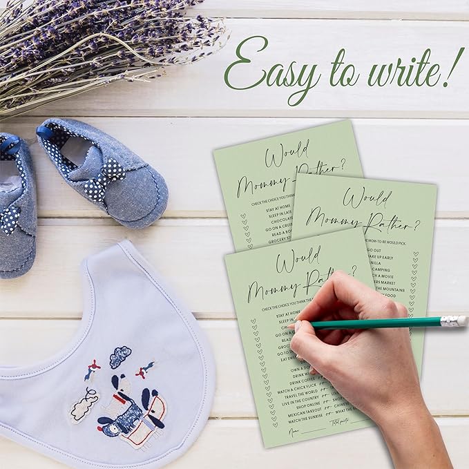 30 Pcs Minimalist Green Baby Shower Game Cards, Would Mommy Rather Game, Baby Shower Games To Play With Family And Friends, Baby Announcement, Gender Reveal Party Supplies - A06