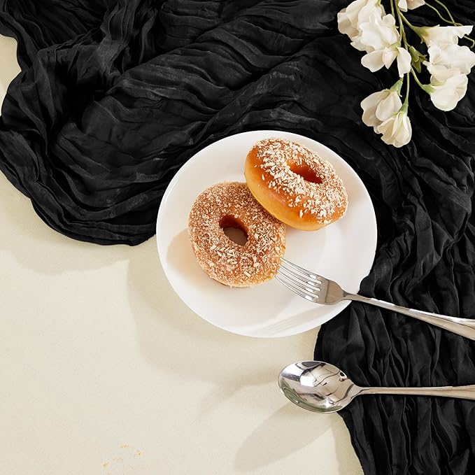 6 Pack Halloween Cheesecloth Table Runner 10FT Long Black Boho Gauze Table Runner Rustic Sheer Runner for Halloween Decoration Wedding Baby Shower Birthday Party Table Decor Thanksgiving Christmas