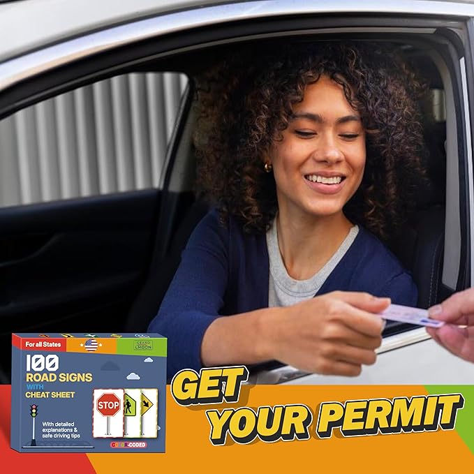 - Comprehensive Set: Includes 100 flash cards covering most common road signs and a Cheat Sheet for effective learning and practice.