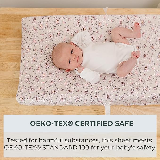 - YOUR BABY DESERVES THE BEST: This premium changing cover is an essential addition to your baby registry and makes the perfect baby shower gift for parents you care about. For your peace of mind, our sheets are OEKO-TEX STANDARD 100 certified, ensuring they have been tested and proven free from harmful substances. Purchase with confidence knowing that if you're not satisfied with the quality of your purchase, you can rely on our satisfaction guarantee. Parenting is challenging enough; shopping for your baby should be easy, and we're here to help.