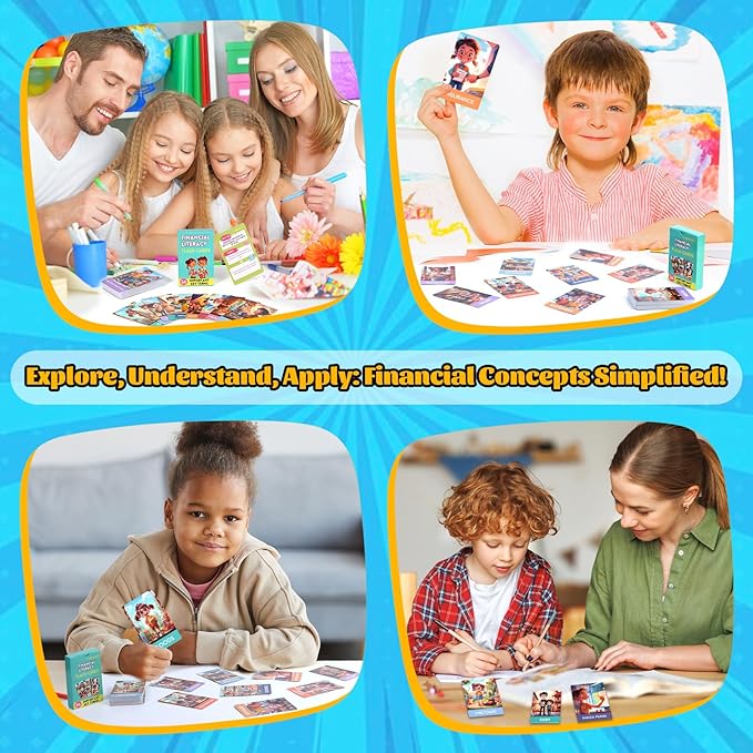 - VISUALLY ENGAGING AND FUN: Transform financial education into an exciting game with our vibrant, illustrative flash cards. Each of the 54 cards features eye-catching graphics paired with clear, concise text, making complex money concepts like saving, investing, and budgeting easy and enjoyable for kids to grasp. This visual approach turns learning about finance into an interactive adventure that children are eager to explore.