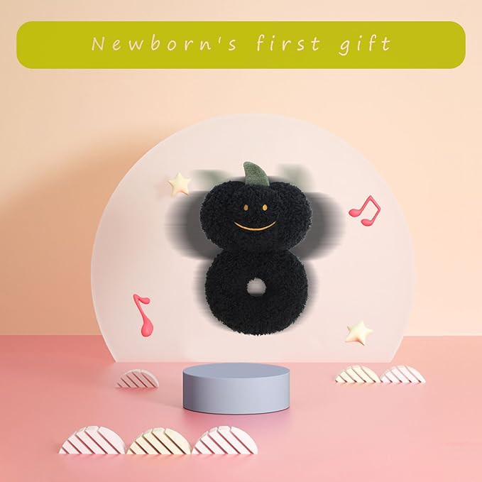 Baby Pumpkin Soft Rattle Toy, Plush Pumpkin Infant Shaker Rattle Easy-Grasp Stuffed Animal Toy, Gifts for Newborns Babies Toddlers Boys Girls, Black, 6 Inches