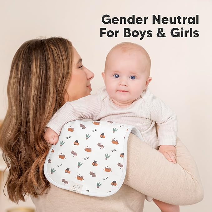 - Sleek & Gender Neutral – Designed to blend with any outfit, our burp rags are suitable for baby girls and boys. Get the clean look and enjoy staying clean all day long with our baby bibs & burp cloths. One of the must-have baby essentials!