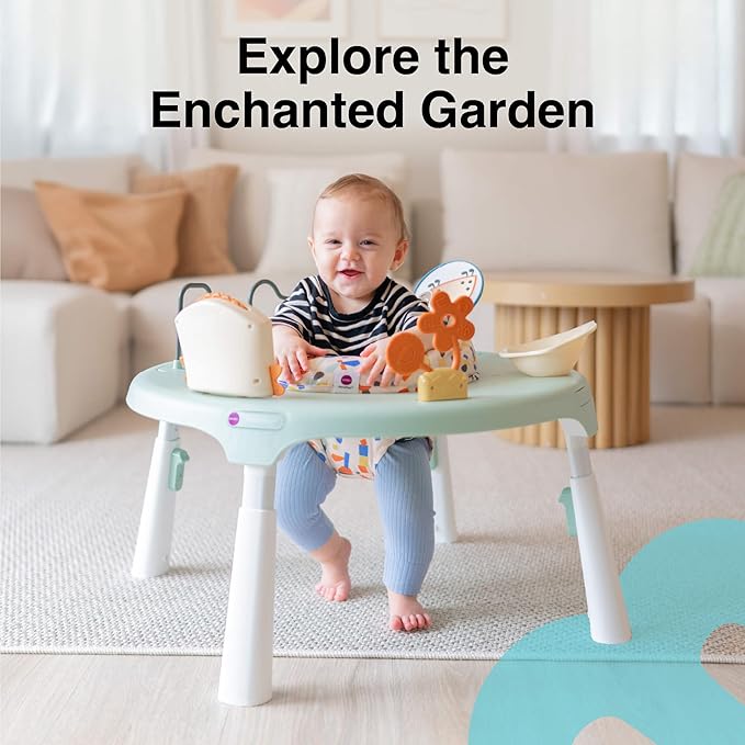 ORIBEL PortaPlay 2-in-1 Baby Activity Center & Play Table| 5 Months+ | Convertible & Portable Stage-Based for Baby| with Development Focused Toys | Unisex (Enchanted Garden, Turquoise)