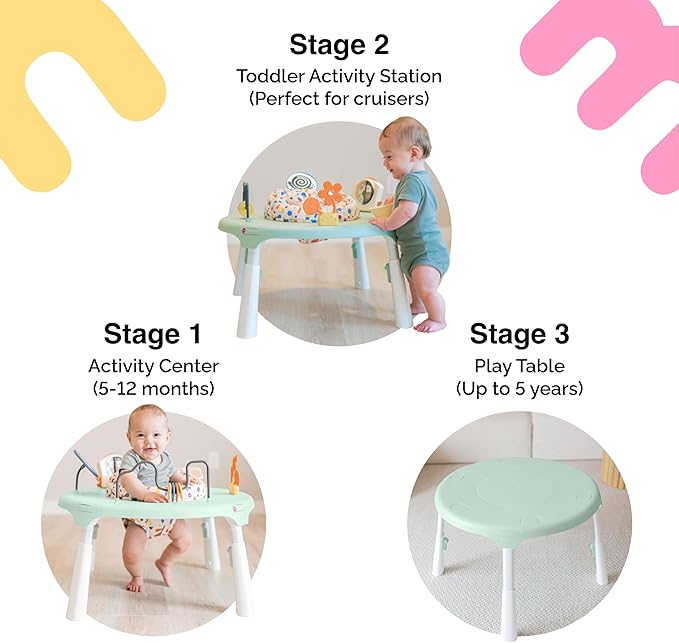 - GROWS WITH ME- PortaPlay is an innovative activity center for baby designed to grow with your child, from 5 months until they start walking. Easily transform it from an engaging activity center to a versatile play table by swapping the seat with the tabletop. Use the activity table with the PortaPlay Stools (sold separately) and paper roll holder (sold separately) for drawing, sketching, and any imaginative activities your little one can dream up!
