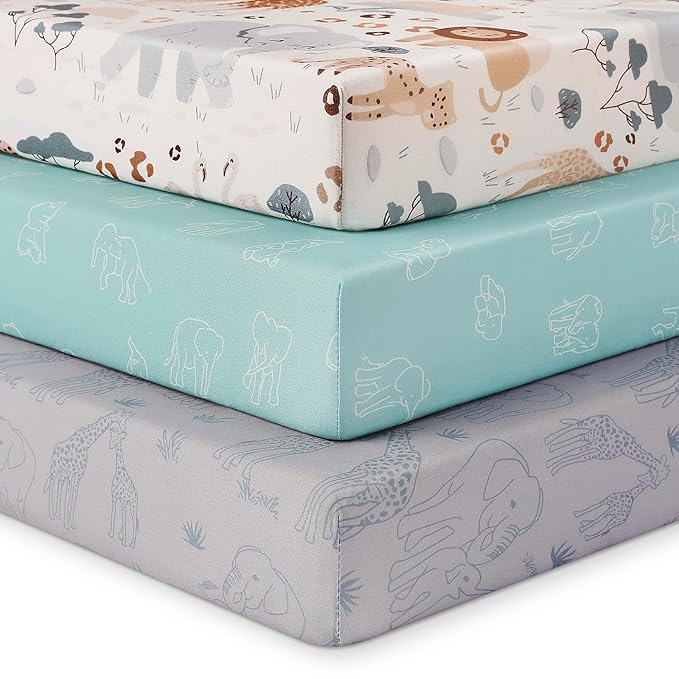- 3-Pack Essential Baby Item: Crib sheets for boys and girls, come with 3 packs. Neutral crib sheets with a wide range of unique prints available, you can choose fitted crib sheet to decorate baby's room, creating a cozy and calm sleeping environment for your darling.