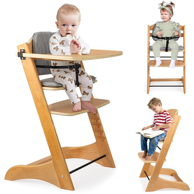 - RELIABLE FIRMNESS - Lcoco & Dream high chair is made of high-quality birch wood to ensure stability and durability. The backrest fits the baby's back curve, eliminating the pressure of the spine on the back, and providing comfortable support and protection for the baby. The Z-shaped structure and stable base prevent tipping. Lcoco&Dream high chair can bear up to 220 pounds, and your child can use it permanently.