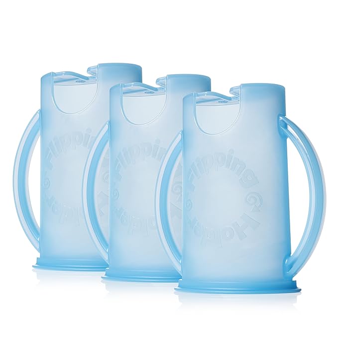 Squeeze Proof Food Pouch Holder for Toddlers, Babies, Kids, Mess Free No Squeeze Juice Box Drink Holder with Easy Grip Handles and Lid - Made in USA (Blue 3 Pack)