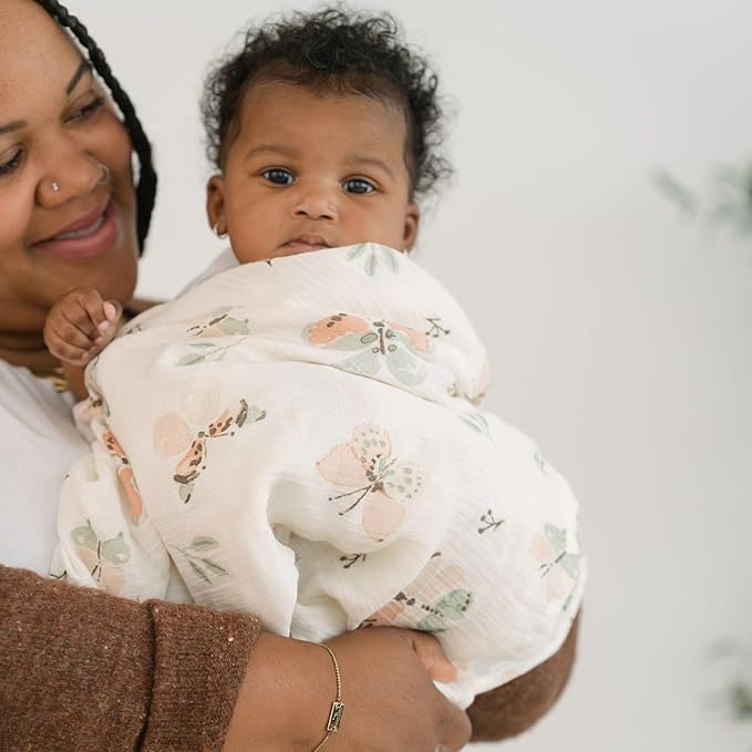 Crane Baby 100% Cotton Muslin Swaddle Blankets, Butterfly/Rainbow, Baby Swaddle Blanket, Set of 2, 47" x 47", Swaddles for Newborns, Baby Muslin Swaddle Blanket, Swaddle Blankets for Boys & Girls
