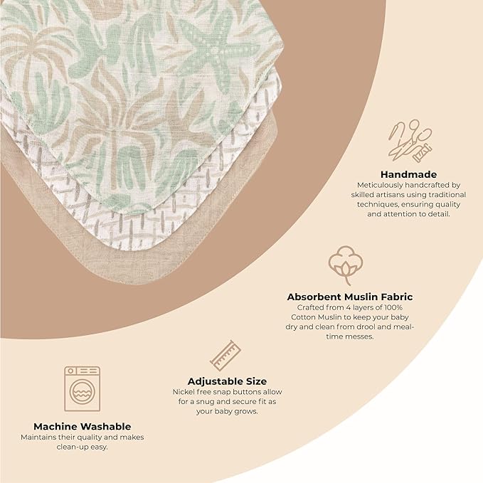 - Soft Yet Durable - Our cotton muslin bibs blend expert, handmade craftmanship with high-quality, durable materials for a soft and durable baby bib, as well as ethically and sustainably sourced