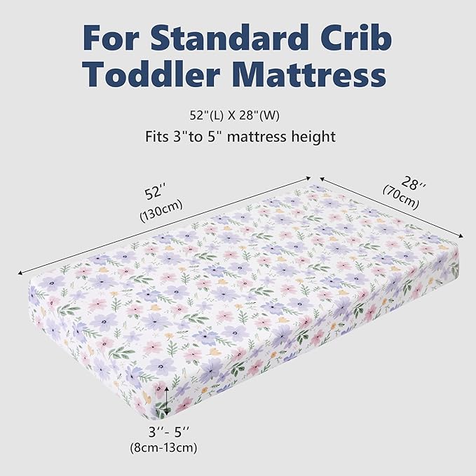 TILLYOU Baby Crib Sheets for Boys Girls, Super Soft Toddler Bed Sheets, 2 Pack Sheets for Standard Crib Mattress 28x52in, Brilliant Little Flowers