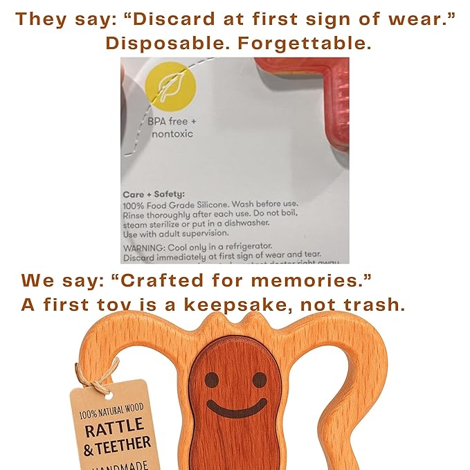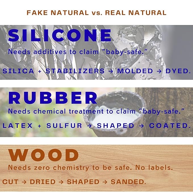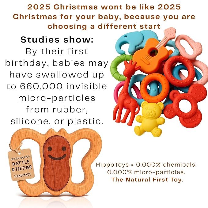 - πͺ΅ THE ONLY RATTLE ON AMAZON MADE FROM 100% NATURAL WOOD Crafted from organic beechwood β no plastic, silicone, rubber, paint, or varnish. WHY: BABIES EXPLORE WITH THEIR MOUTHS, SO NATURAL WOOD IS THE CLEANEST, SAFEST CHOICE