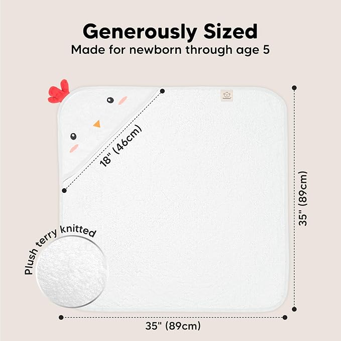- Large and Durable Hooded Baby Bath Towels β Measuring 35" x 35", KeaBabies Hooded Baby Towels for newborn are built to be long-lasting even with repeated washes. The soft baby hooded towel can be use as your newborn grows into a toddler and up to age 5.