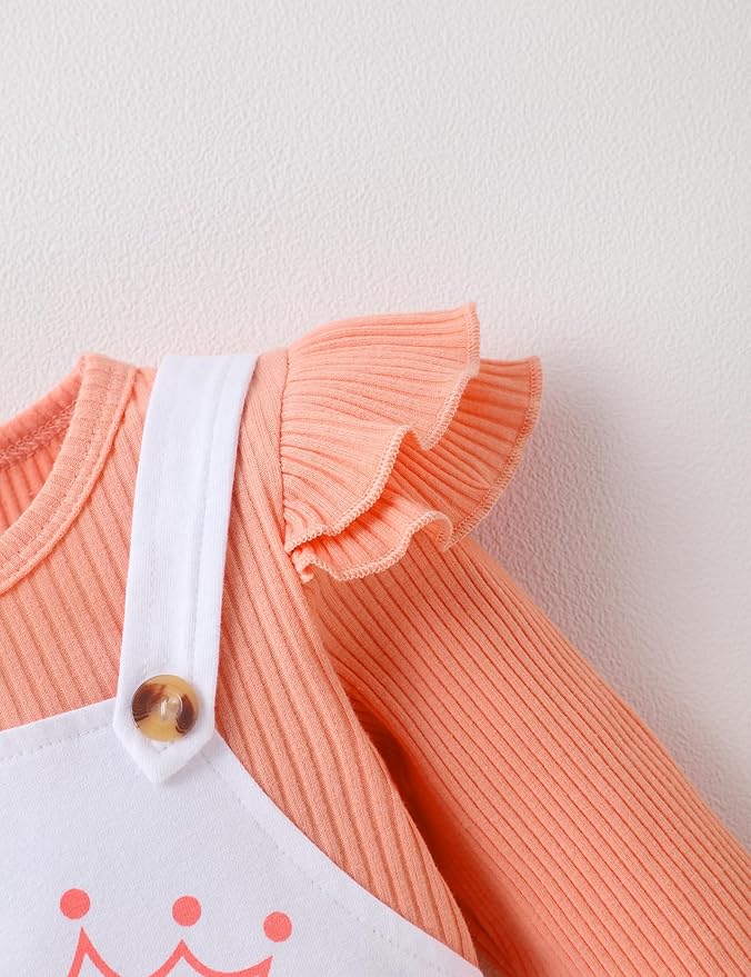 - Design of baby girl clothes: The baby girl ruffle 0-3 month romper girl is with warm prints, crown&The Princess Has Arrived, show the deep love from the whole family. The baby girl bodysuit also with cute elements, such as strap splicing and lovely pink bow