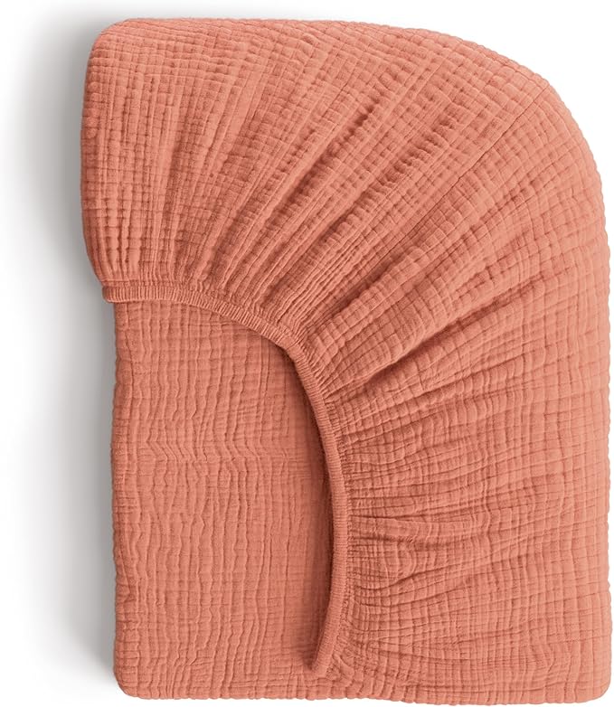 Muslin Crib Sheets, 100% Organic Cotton, Breathable and Ultra-Soft, Standard Crib Sheet Mattress (28"x 52") for Girls and Boys, Neutral Fitted Baby Crib Sheet (Brick Red)