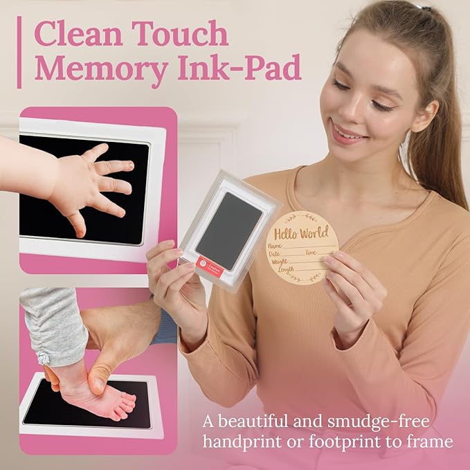 - Keepsake Baby Gift Basket – Create treasured memories with a memory ink pad for tiny footprints and a charming wooden welcome sign to celebrate the baby’s arrival—perfect for parents who love meaningful newborn baby girl gifts.