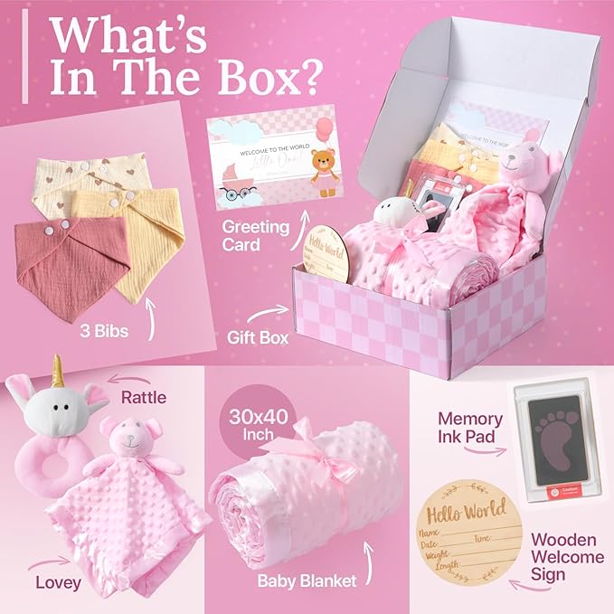 - Unique Baby Girl Gift for Any Occasion – Whether you need a newborn girl gift, a baby shower girl gift, or a new baby girl gift basket, this premium baby gift box is a heartwarming choice that parents will cherish.