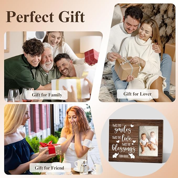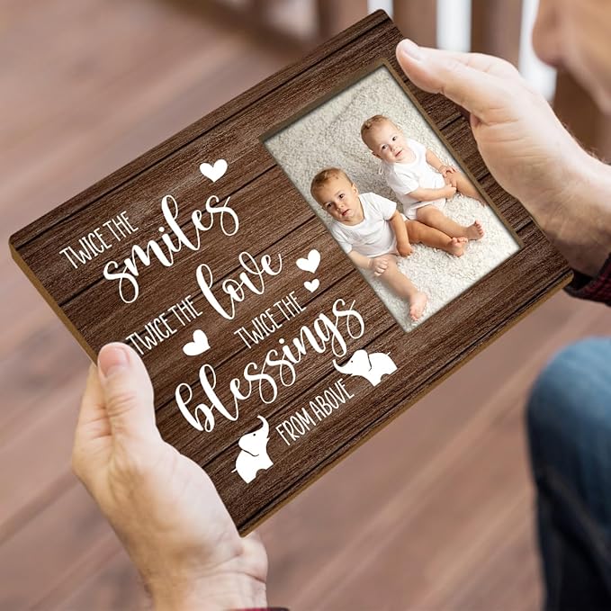 Twins Baby Picture Frame, Twice The Smiles Twice The Love, Photo Frame for New Baby, New Baby Gift Twin Baby Gifts for New Mom Dad, 4x6 Wooden Photo Frame For Wall Tabletop Display /022
