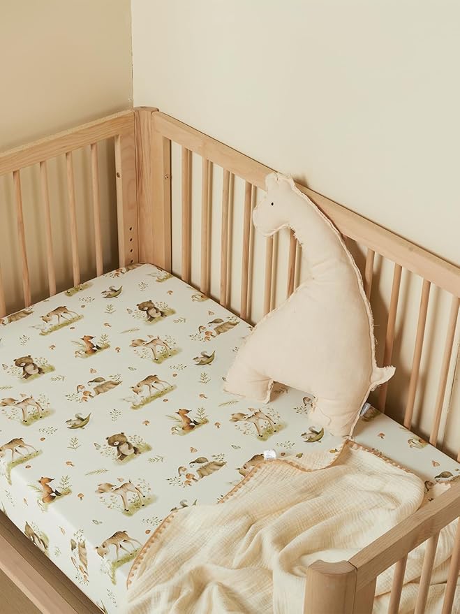 TILLYOU Baby Crib Sheets for Boys Girls, Super Soft Toddler Bed Sheets, 2 Pack Sheets for Standard Crib Mattress 28x52in, Playing in The Woods and Green