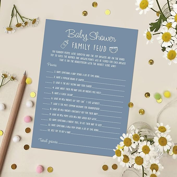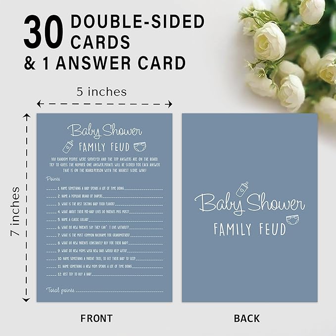 Family Feud Game - Pack of 30 Cards, Answer Key, Boy & Girl Baby Shower Decorations, Feud Game Supplies-01D-Mazarine