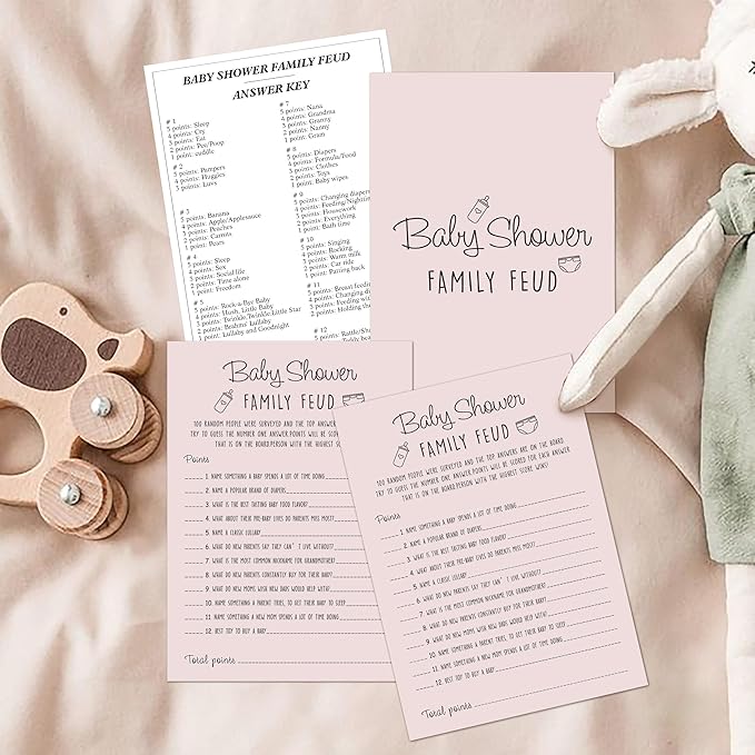 Baby Shower Family Feud Game - Pack of 30 Game Cards 1 Answer Key, Baby Shower Game for Boy & Girl, Gender Neutral Baby Shower Decorations, Baby Feud Game Supplies-01A-Indipink
