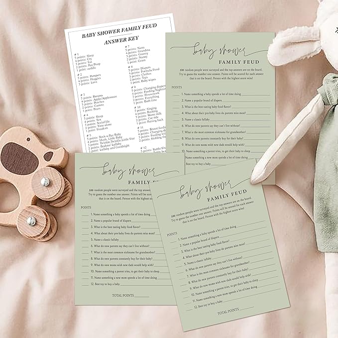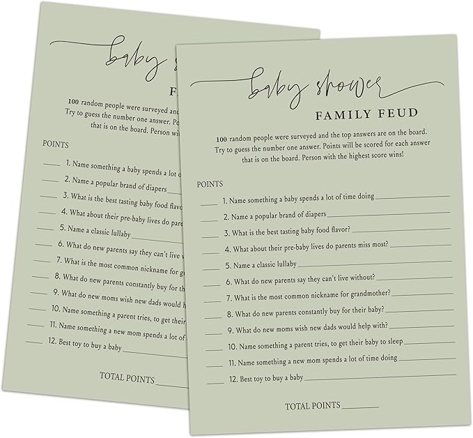Family Feud Baby Shower Game - 30 Cards, Answer Key, Gender Neutral Decorations for Boy & Girl - 06E-Atrovirens