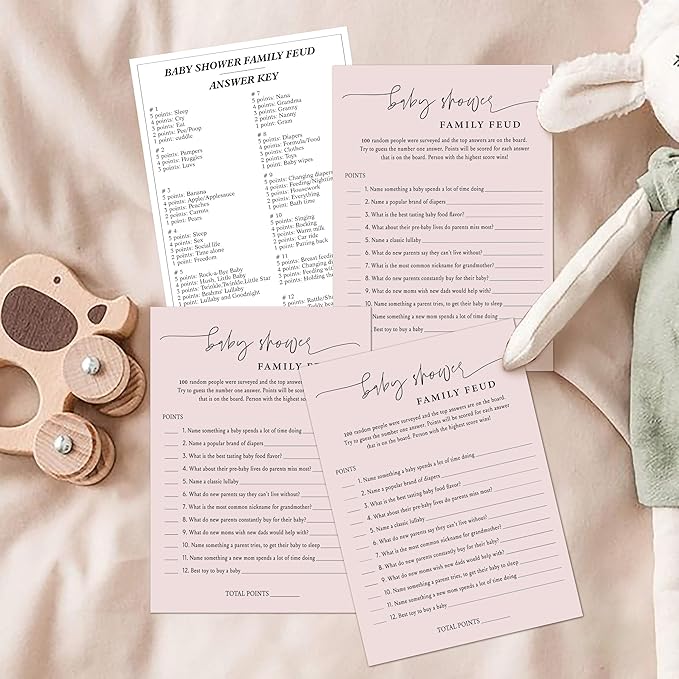 Baby Shower Family Feud Game - Pack of 30 Game Cards 1 Answer Key, Baby Shower Game for Boy & Girl, Gender Neutral Baby Shower Decorations, Baby Feud Game Supplies-06A-Indipink