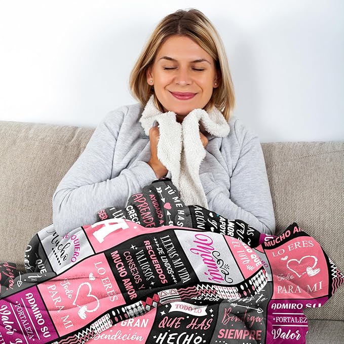 - Regalos para Mamá: Looking for a meaningful gift for Mom? This beautifully designed fleece blanket is more than just warmth—it’s a daily reminder of your love. Soft, cozy, and covered in heartfelt messages, it will bring a smile to her face, wrapping her in comfort and affection every time she uses it