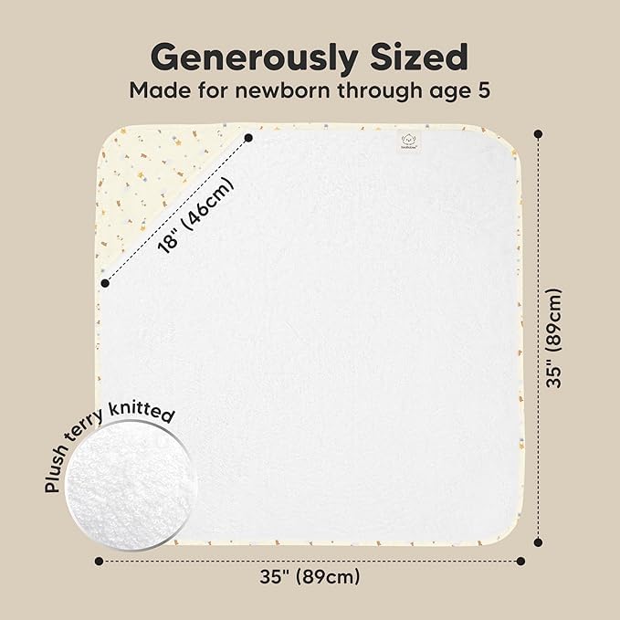 - Large and Durable Hooded Baby Bath Towels β Measuring 35" x 35", KeaBabies Hooded Baby Towels for newborn are built to be long-lasting even with repeated washes. The soft baby hooded towel can be use as your newborn grows into a toddler and up to age 5.