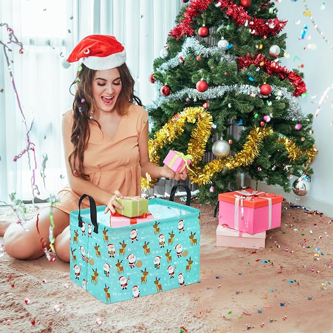 Rectangle Basket, Kids Organizer, Santa Deer Pattern Toy Storage Cube, Clothes Storage Box With Handles for Room Decor