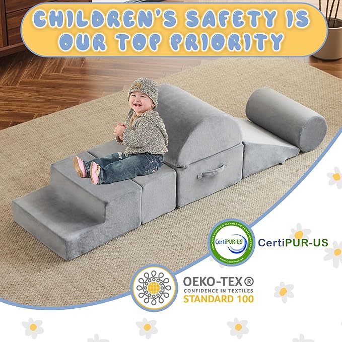 - 【SAFE AND GUARANTEED】: Jela kids foam climbing blocks are CertiPUR-US certified, non-toxic, environmentally friendly, and odorless fabric with OKEK-TEX approved. The soft play climbing for toddlers with hidden zippers are designed to avoid scratching children's soft skin. We focus on offering kids a reassuring environment to play, the product is built without hard structure or smooth edges, to prevent kids from bumping.