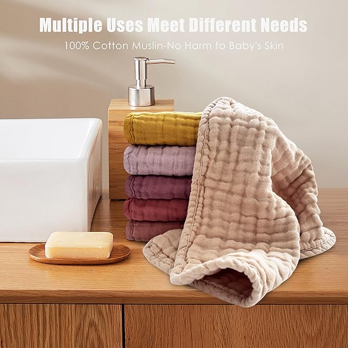 - π LUXURIOUSLY SOFT MUSLIN COTTON SET: Elevate your baby's bath time with our set of 12 washcloths, meticulously crafted from 100% Muslin Cotton. Designed for newborns and infants, these washcloths are ultra-absorbent and perfect for gentle cleansing.