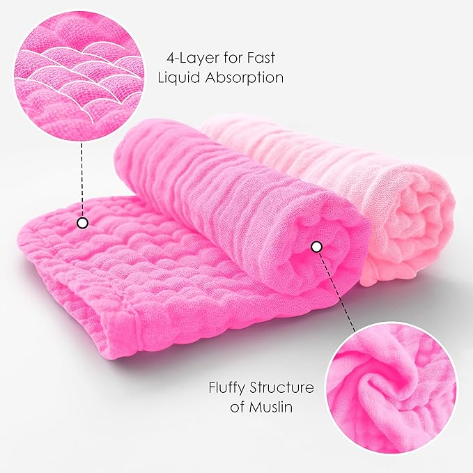 - π LUXURIOUSLY SOFT MUSLIN COTTON SET: Elevate your baby's bath time with our set of 12 washcloths, meticulously crafted from 100% Muslin Cotton. Designed for newborns and infants, these washcloths are ultra-absorbent and perfect for gentle cleansing.