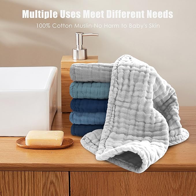 - π LUXURIOUSLY SOFT MUSLIN COTTON SET: Elevate your baby's bath time with our set of 12 washcloths, meticulously crafted from 100% Muslin Cotton. Designed for newborns and infants, these washcloths are ultra-absorbent and perfect for gentle cleansing.