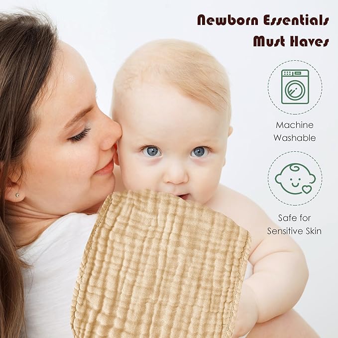 - SUPER ABSORBENT: Featuring muslin design, these baby washcloths offer superior softness, breathability, and absorbency. The quick-drying fabric is perfect for keeping baby's skin dry and comfortable.