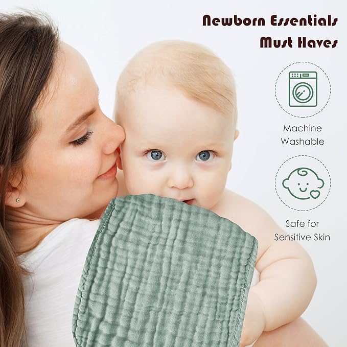 Muslin Burp Cloths 100% Cotton Large 20''x10'' Extra Soft and Absorbent Baby Wash Cloths Spit Up Rags - Baby Burping Cloth for Boys Girls Items(12 Pack Green)