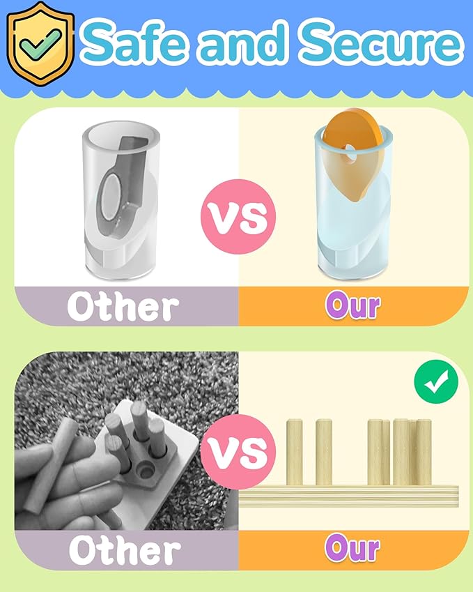 - Safe and high-quality toddler toys : We insist on using high quality wood raw materials to provide safe and fun toys for toddlers. The toddler learning toys with a moderate geometric size and smooth edges, can be grasped well by babies while protecting the baby's delicate skin. We also use the water-based paint, the color more vivid, non-toxic, odorless and anti-fade, for your baby safe and happy childhood.