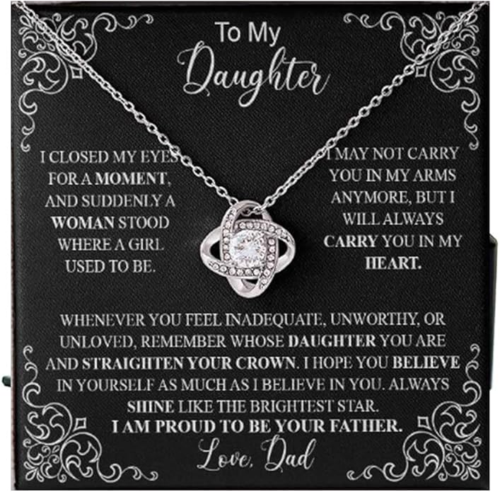- π¨ TOUCHING MESSAGE INCLUDED - To My Daughter I CLOSED MY EYES FOR A MOMENT, AND SUDDENLY A WOMAN STOOD WHERE A USED TO BE; I MAY NOT CARRY YOU IN MY ARMS ANYMORE, BUT I WILL ALWAYS CARRY YOU IN MY HEART; WHENEVER YOU FEEL INADEQUATE, UNWORTHY, OR UNLOVED, REMEMBER WHOSE DAUGHTER YOU ARE AND STRAIGHTEN YOUR CROWN. I HOPE YOU BELIEVE IN YOURSELF AS MUCH AS I BELIEVE IN YOU. ALWAYS SHINE LIKE THE BRIGHTEST STAR. I AM PROUD TO BE YOUR FATHER. Love. Dad