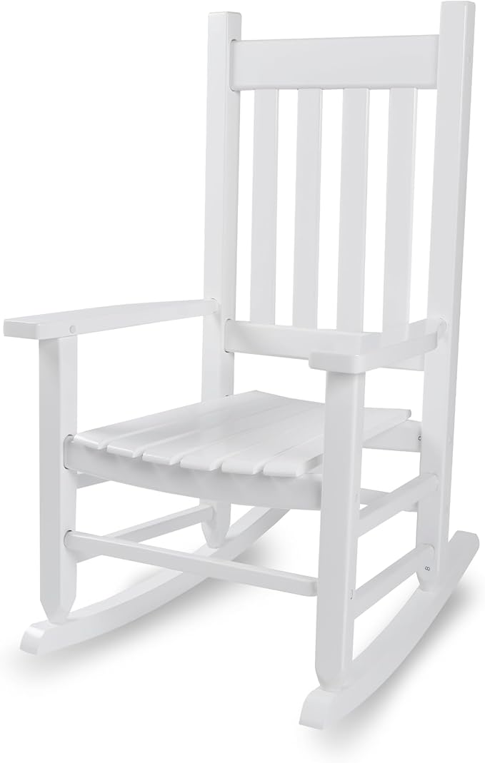 Kids Rocking Chair for Toddlers and Children Comfy Recliner Wooden Rocker for Baby Girls Outdoor Lounge Chair for Kids Age 6-10 Indoor Christmas Gift White