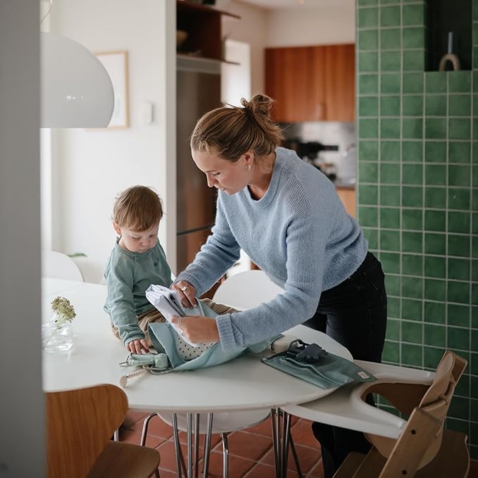- Comfort on the Go: Featuring a zipper closure and machine washable, water resistant material, mushie wet bags are designed to help tackle messy situations on the go. The handles include a snap closure to easily hang or attach to a stroller.