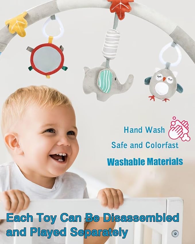 - Car seat toys,It is an early development toy.crib toys hanging made of washable materials.Each stroller toy can be detachable dsassembled and played separately.