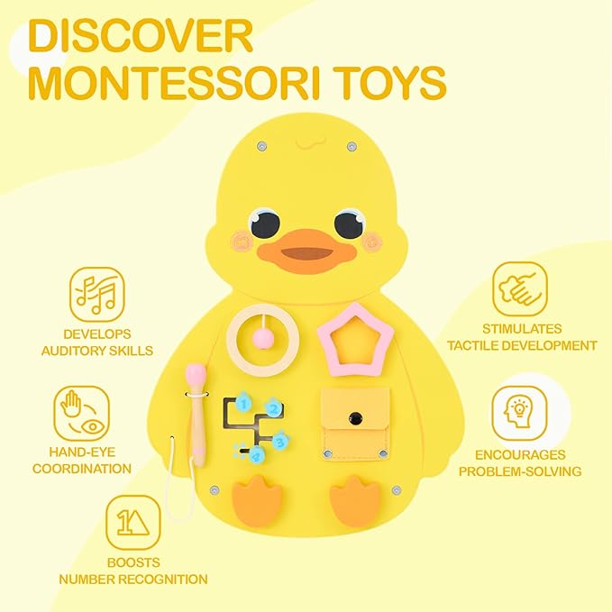 Monläurd® Wooden Duck Sensory Wall Toy, Busy Board for Toddlers, Montessori Sensory Wall Panel for Kids, Ideal for Classroom, Playroom & Daycare, Wall Activity Board