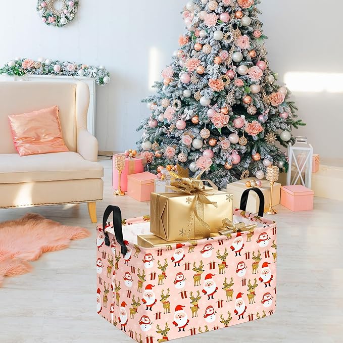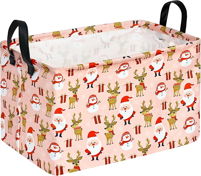 Rectangle Basket, Kids Organizer, Santa Pattern Toy Storage Cube, Clothes Storage Box With Handles for Room Decor