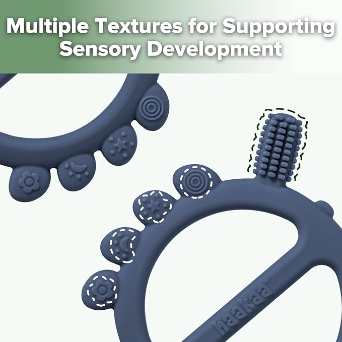 - ๐๐ฅ๐ฅ-๐๐ซ๐จ๐ฎ๐ง๐ ๐๐๐๐ญ๐ก๐ข๐ง๐ ๐ฐ๐ข๐ญ๐ก ๐๐ง๐ข๐ช๐ฎ๐ ๐๐๐ฑ๐ญ๐ฎ๐ซ๐๐ฌ๏ผWith gentle bristles and varied textures, this teether massages front and back gums for full relief. For added comfort, cool it in the fridge or freezer.