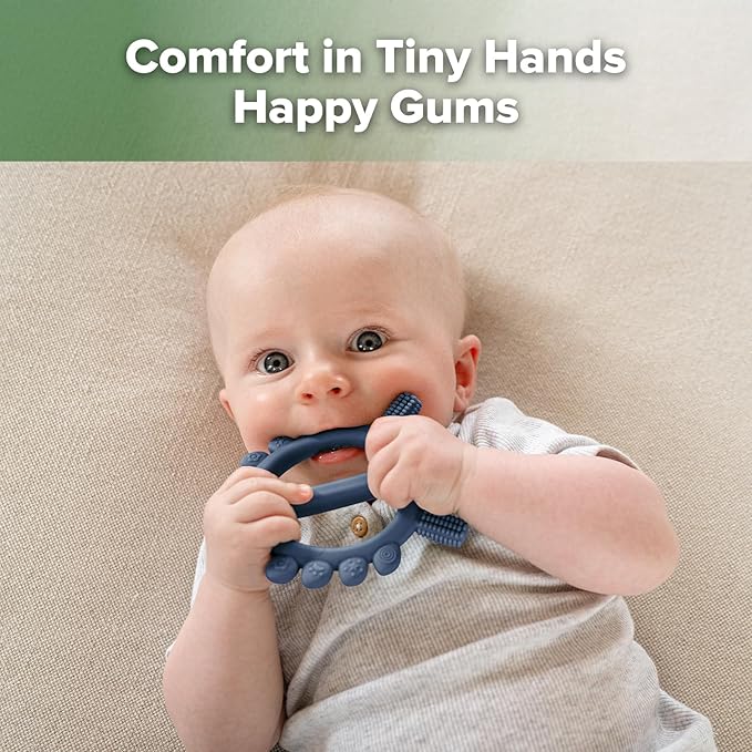 Haakaa Silicone Crab Baby Teether,Teething Toys,360ยฐBaby Toothbrush Head for Infant Self-Brushing Training,Food-Grade Silicone,Steel Blue