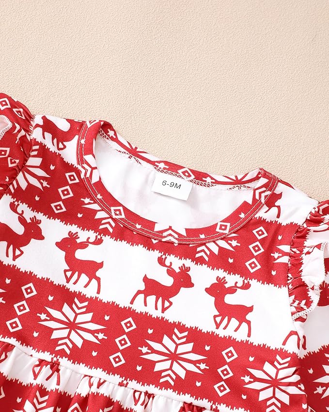 - Design: Red snowflake deer ruffle long sleeve shirt, match with santa pants, cute baby girl christmas outfit.