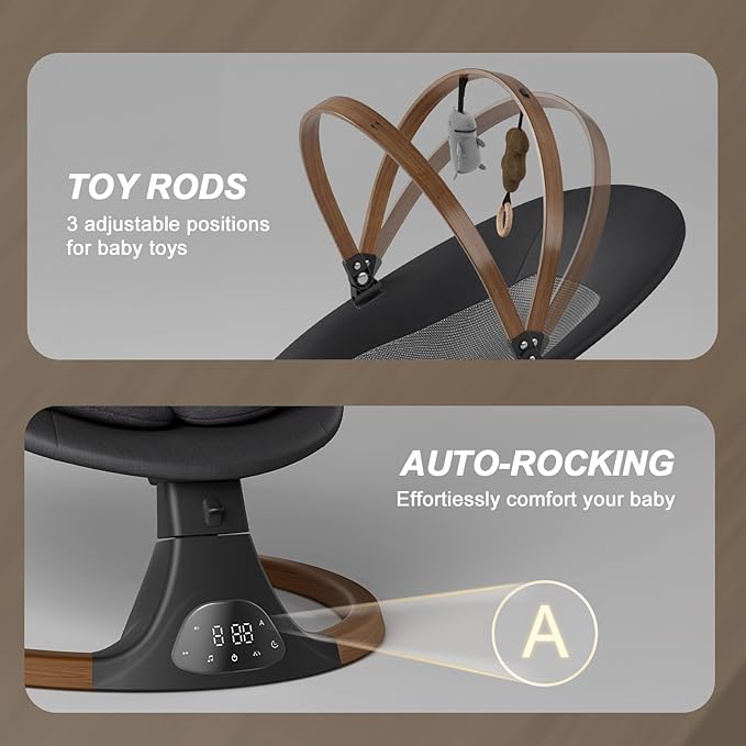 - STATIONARY BABY SWINGS -- When the vibration detection function is on, the system accurately detects when the baby is on the move and begins to gently swing. When the baby is quiet, the swing remains stationary. Effortiessly comfort your baby with our innovative auto-rocking technology