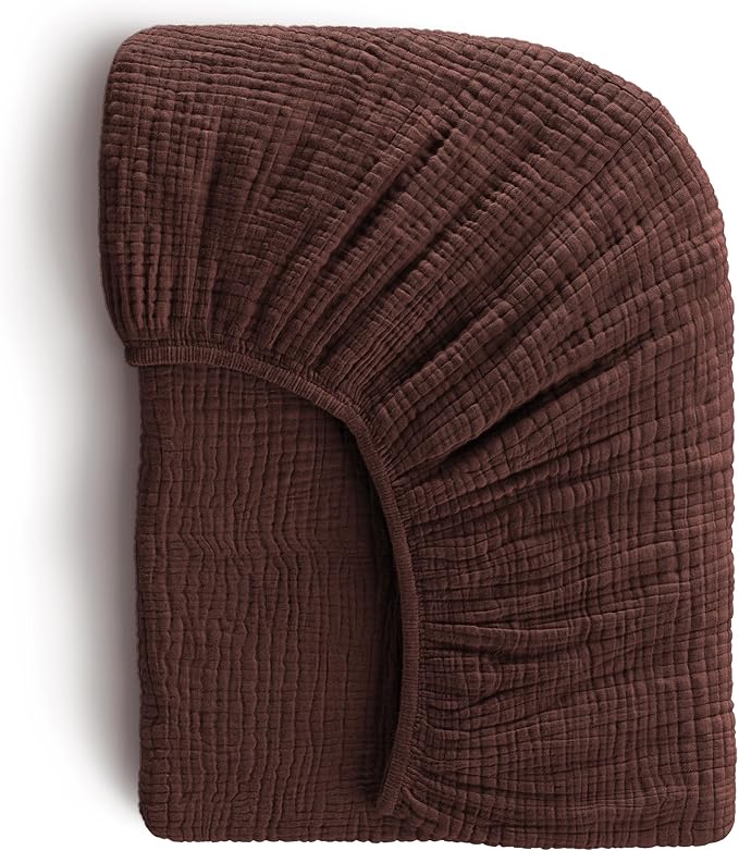 Muslin Crib Sheets, 100% Organic Cotton, Breathable and Ultra-Soft, Standard Crib Sheet Mattress (28"x 52") for Girls and Boys, Neutral Fitted Baby Crib Sheet (Dark Brown)